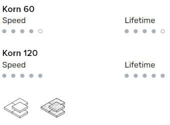 | Korn | 60, 120 |