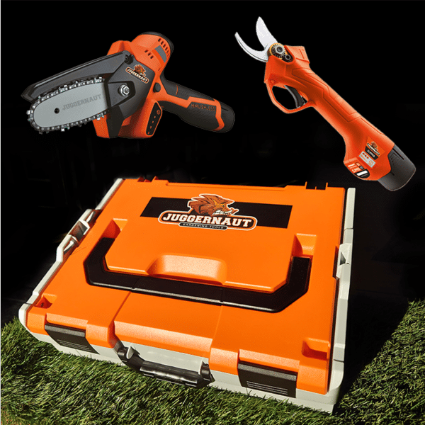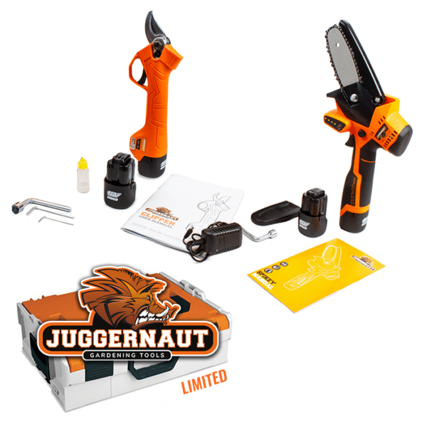 Juggernaut ACTIONSKIT – Speziell für die Beschneidungssaison entwickelt und begrenzt verfügbar. Akku-Baumsäge und Akku-Baumschere werden inkl. 3x Akku und Ladegerät geliefert!
