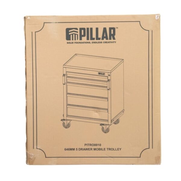 Pillar Werkzeugwagen mit 5 Schubladen, 646 mm. Ideal für mobilen Werkzeugstauraum in Werkstätten.