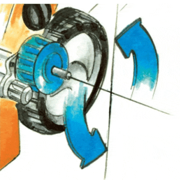 - Direktantrieb – Der Direktantrieb des Motors sorgt für einen effizienten Energieverbrauch und damit für eine größere Schnittreichweite pro Akkuladung.